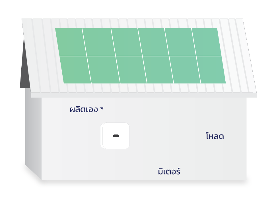 * ไฟฟ้าที่ผลิตได้จะถูกนำไปใช้เป็นอันดับแรก หากไม่เพียงพอต่อการใช้งานระบบจะดึงไฟฟ้าจากผู้จำหน่ายเข้ามาเสริม